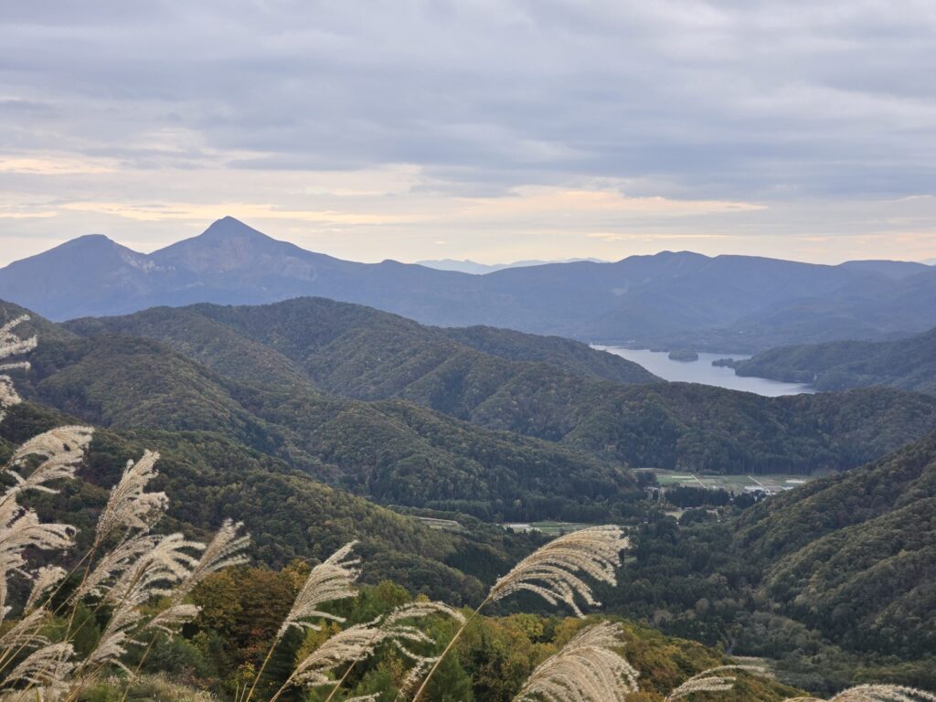 西吾妻スカイバレーに入った。遠くに檜原湖を望む。