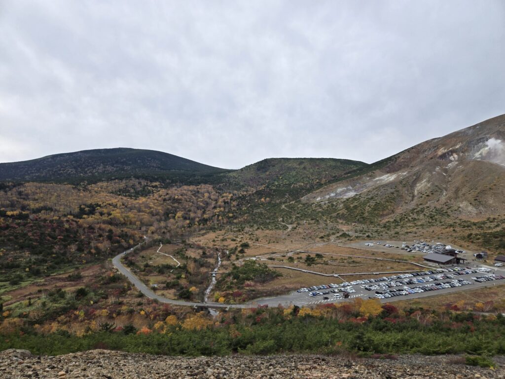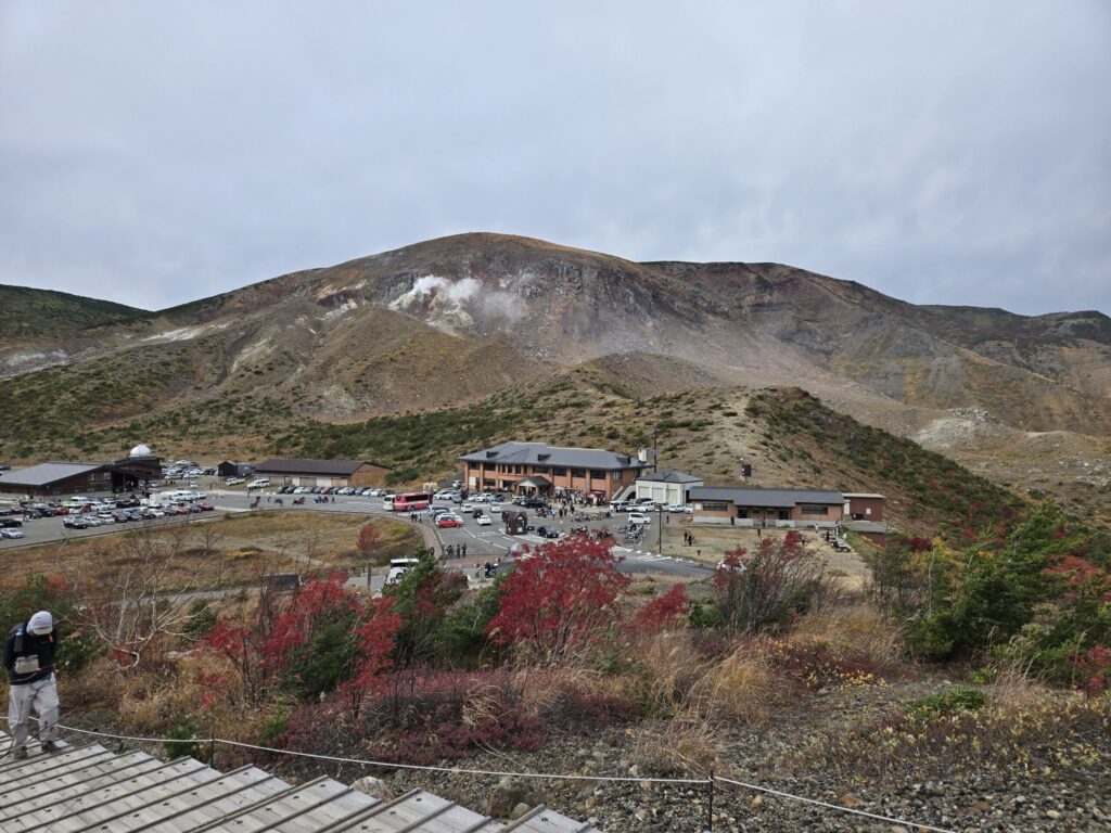 火山地帯の荒々しさと紅葉のカラフルさのコントラストが素晴らしい。