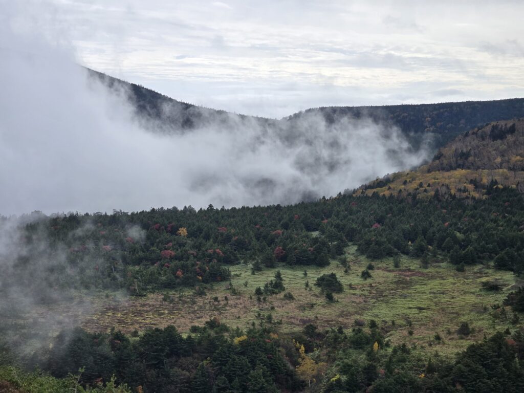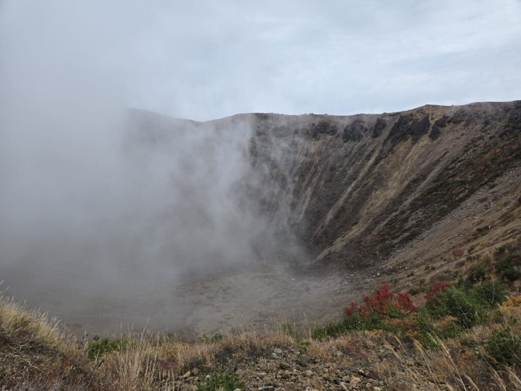 お鉢巡り最後は霧に包まれてしまった。40分ほどで1周完了。