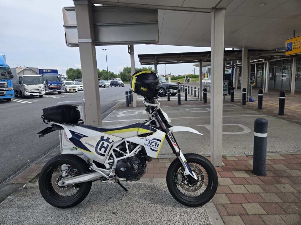 高速を使って移動。いつもの波志江PAで一休み。701の高速巡行のつかれ具合はいかほどか気になっていたのですが、690エンデューロRよりは安定しているし、慣れてきたら結構いける感じです。ただ、泊まって休んでいたら手がしびれていることに気づきました。その辺はさすが単気筒ということろでしょうか。