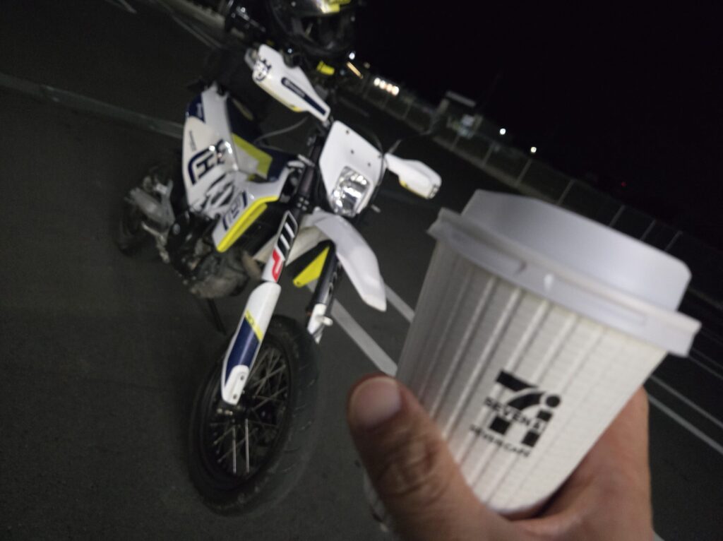 帰り道のコンビニコーヒー。楽しかったツーリングの満足感に浸りながらの休憩のひと時が何とも言えず良いんですよね~